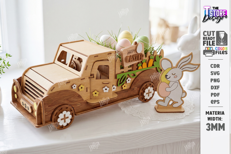 Easter Gift Idea Easter Truck Svg File Laser Cut Easter Decor 3d Layered Pickup Template Glowforge Holiday Truck Pattern Wooden Bunny Decoration Svg Egg Holder Laser Layout 3mm Plywood Spring Model Farmhouse Seasonal Table Décor Rabbit Party Display