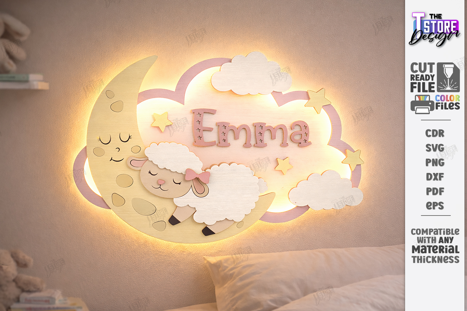 Personalized Night Light Svg Baby Name Lamp File Nursery Wall Decor Laser Cut Cloud Led Light Design Custom Newborn Gift Template Layered Wood Nightlight Pattern Glowforge Baby Project File 3mm Plywood Lamp Layout Cnc Nursery Decor Design Baby Shower Present Idea