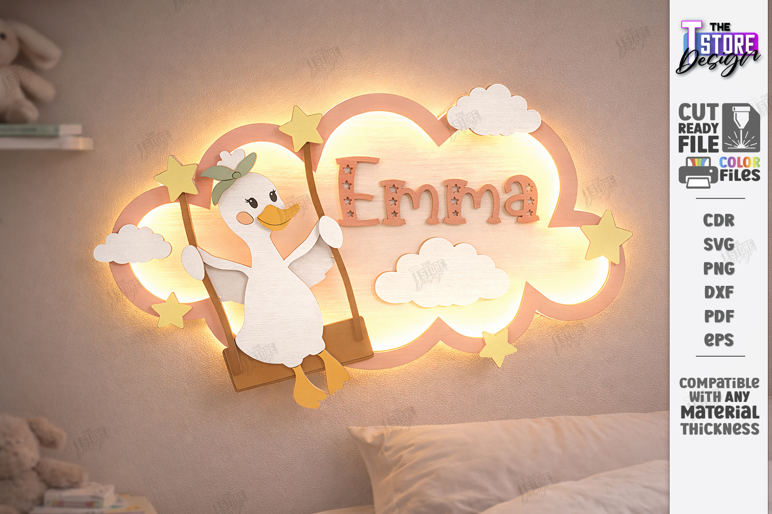 Create a beautiful personalized cloud night light with custom baby name using this layered laser cut SVG design. Perfect for 3mm plywood, LED backlight projects, nursery wall decor, baby shower gifts and newborn room styling. Compatible with Glowforge, CNC and laser cutting machines