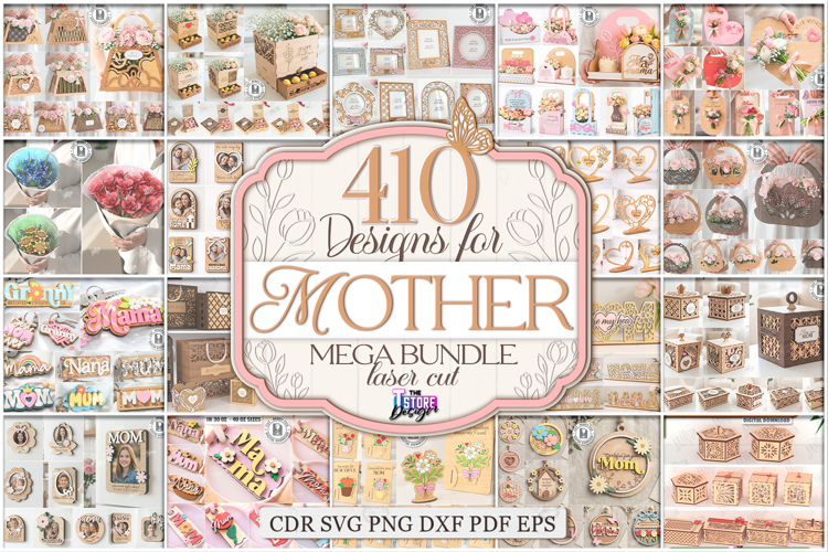 Mother's Day Mega Bundle SVG, 410+ Designs for Laser Cut, Personalized Gift for Mom, Floral Box, Photo Frame, Jewelry Box, Glowforge File