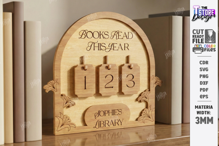 Books Read Tracker Laser Cut Files, Reading Tracker Sign SVG, Kids Reading Challenge Sign Glowforge File, Book Counter Laser Cut Decor