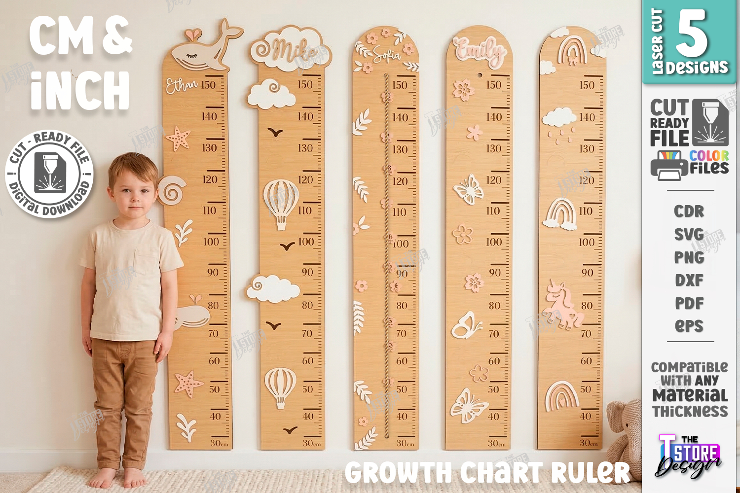 Kids Growth Chart Rulers Laser Cut Bundle | Height Trackers