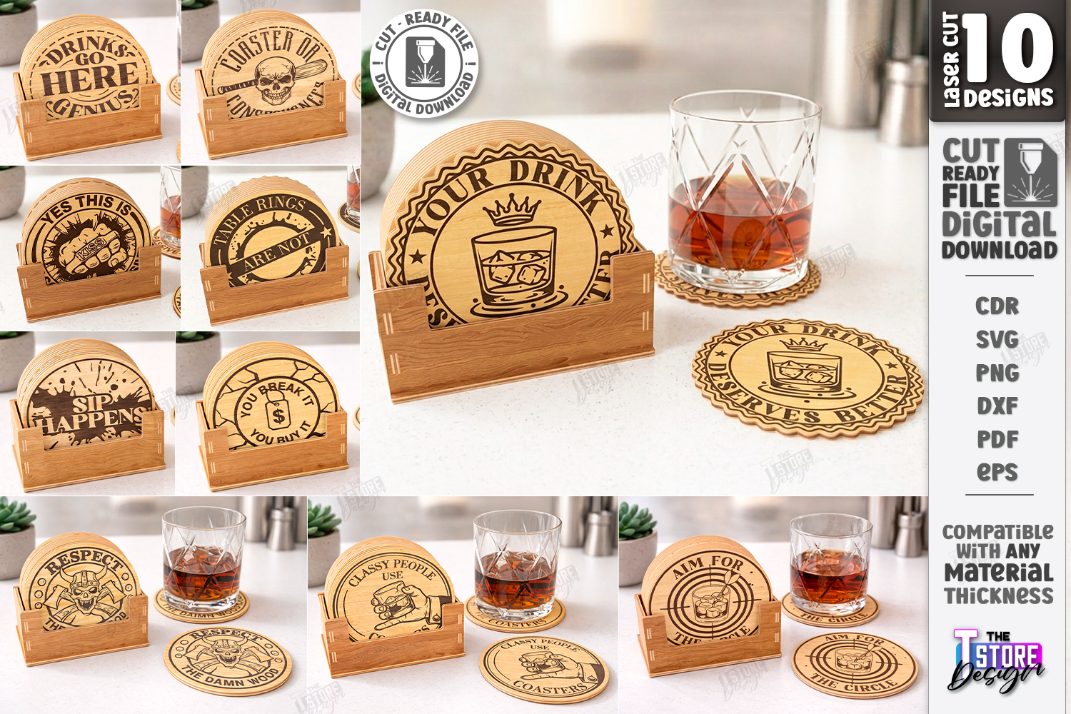 Sarcastic Coasters Laser Cut Bundle | Funny Coaster SVG with Stand | Snarky Alcohol Sayings Laser Design | Drinks Go Here Genius SVG | Funny Bar Decor Laser File | Glowforge Coaster SVG | Wood Engraved Coaster | Man Cave Gift Laser Cut | Whiskey Bar Accessories SVG | CNC File