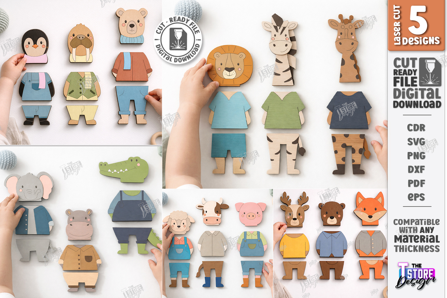 Animal Puzzles Laser Cut Bundle | Toddler Wooden Puzzles | Mix and Match Animals SVG | Educational Toys and Games | Kids Activities | Forest and Safari Animals | Glowforge Cut File | Kids Laser | Montessori Toy | Nursery Decor | Plywood Animal Dress Up Jigsaw | Vector Files for CNC | Kids Game | Blocks Puzzle | Wooden Toy | Board Game | Animals Design SVG | Mini Game for Child | CNC Files