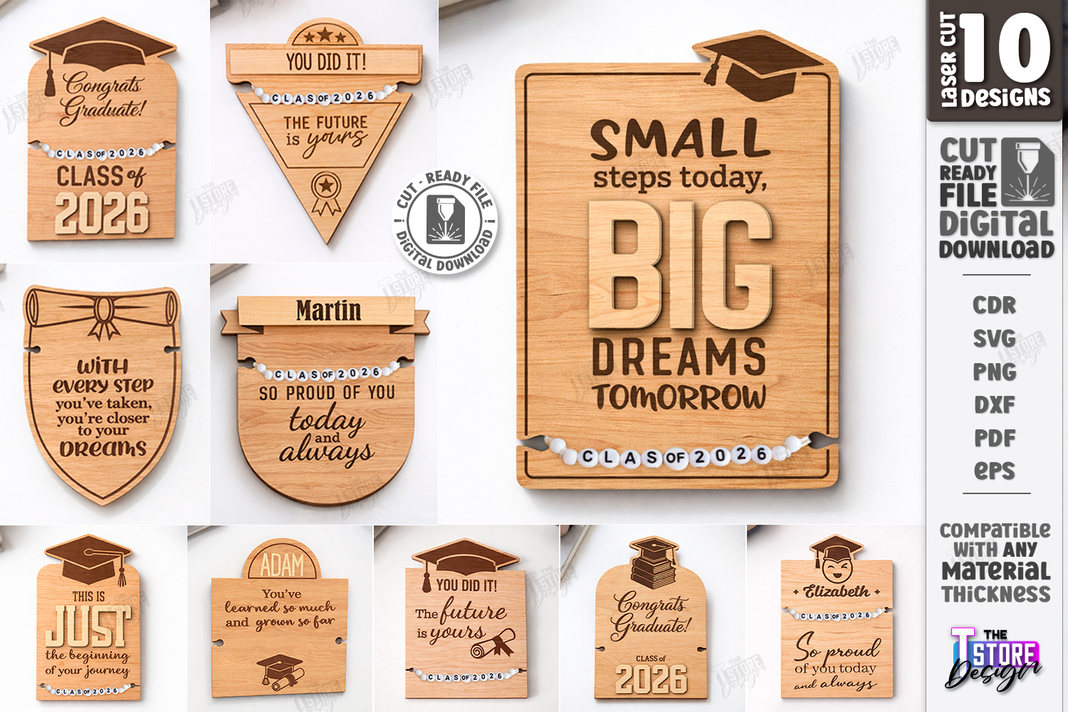 Graduation Bracelet Holder Laser Cut Bundle | 10 Wood Jewelry Display Cards | Class of 2026 Grad Gift Tags | Personalized Small Steps Big Dreams Keepsake | Future is Yours Jewelry Packaging | Glowforge Ready Laser Cut Files | Student Reward Cards | Graduation Favor Tags | Laser Engraved Wood Cards | Glowforge Cut File | Grad 2026 | High School Graduation | CNC File