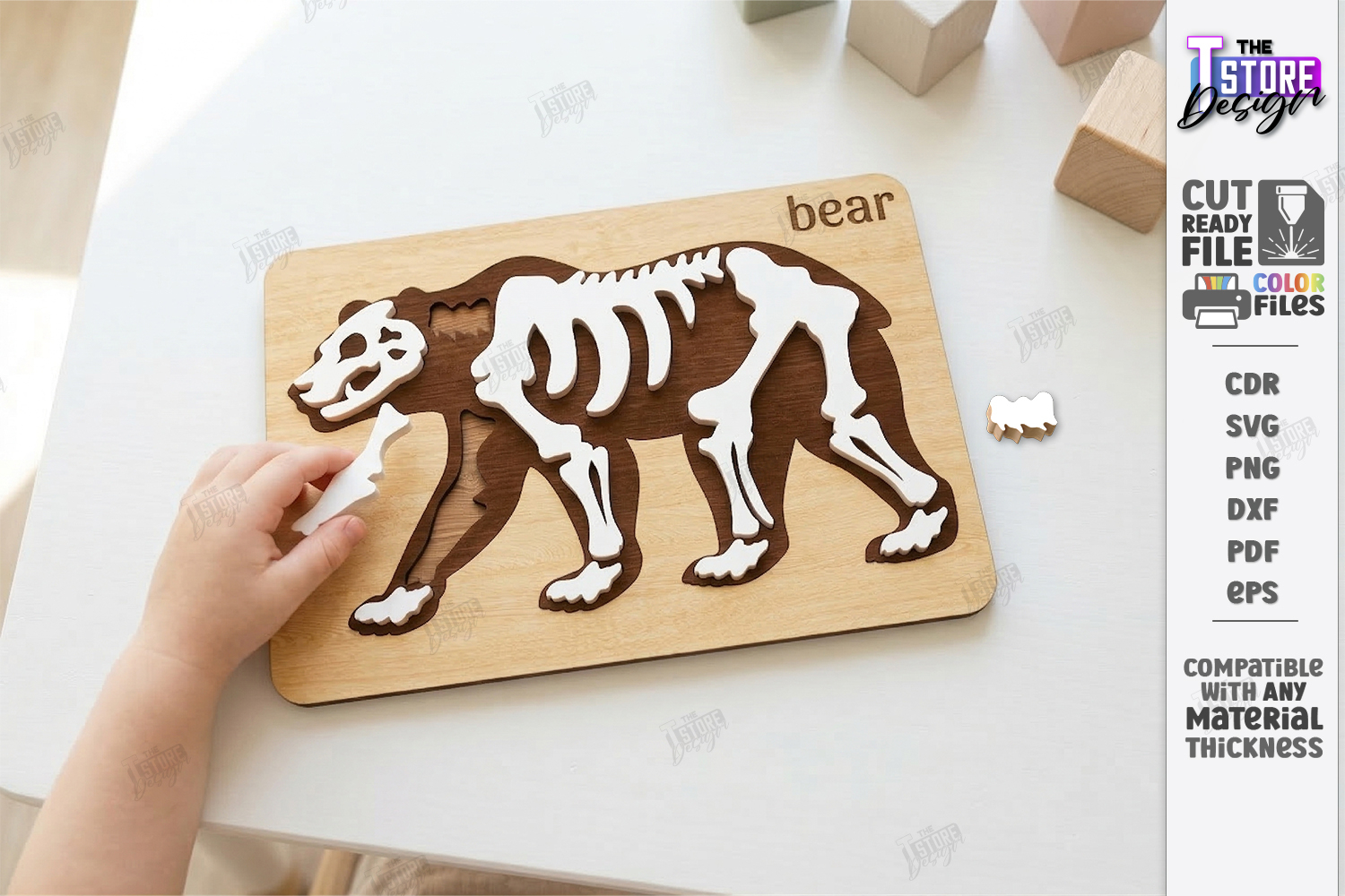 Animal Skeleton Laser Cut | Anatomy Puzzles | Montessori Educational Wooden Toys for Kids | Zoo Animals Bones Science Puzzle Glowforge Design | Wild Life Anatomy Plywood Craft Kit | Preschool Learning Activity Laser Ready Files | Biology Classroom Decor DIY Projects | Bear | CNC File