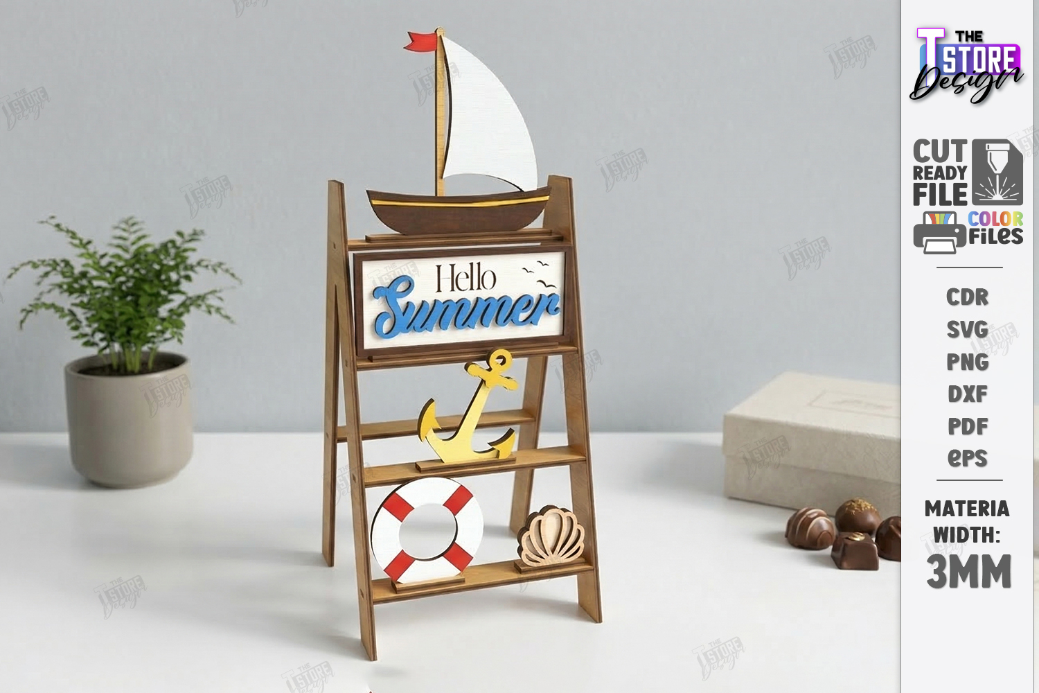 Mini Decorative Ladder Shelf Laser Cut | Tiered Tray Decor SVG | Seasonal Interchangeable Sign for Laser Cut | Summer Spring Easter Bee Garden Boat Decor | Glowforge Ready File | 3D Layered Plywood Shelf Vector |Shelf Sitter Designs | Home Decor | Spring Sign | Sea and Ocean | Love SVG | Easter Tiered Tray | Easter Signs | CNC File