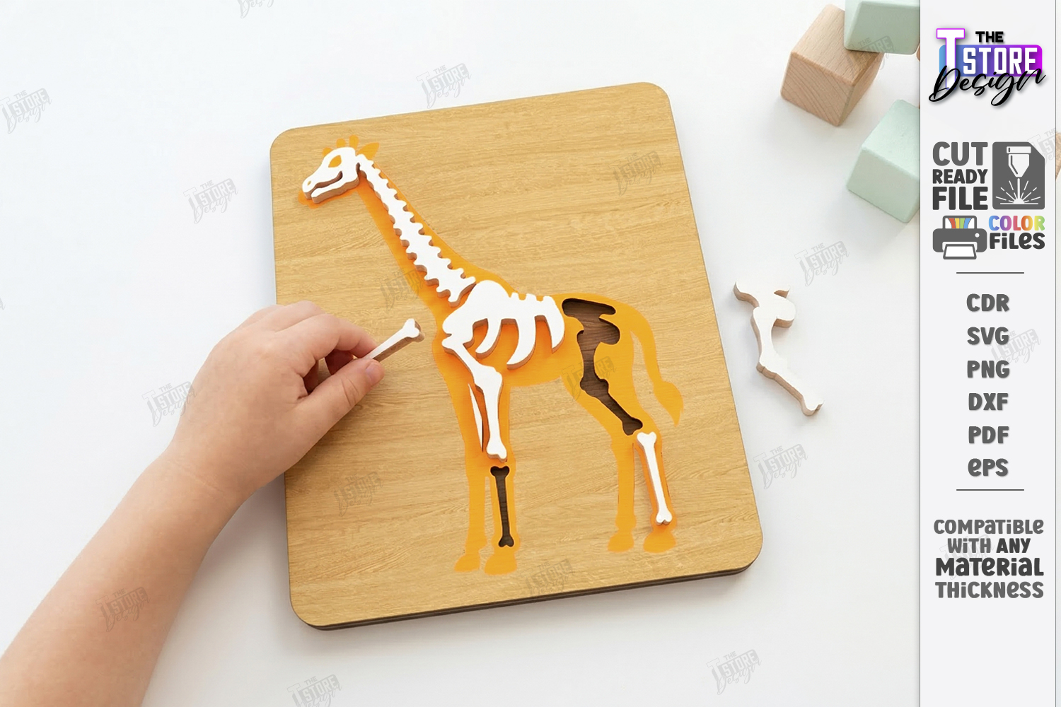 Animal Skeleton Laser Cut | Anatomy Puzzles | Montessori Educational Wooden Toys for Kids | Zoo Animals Bones Science Puzzle Glowforge Design | Wild Life Anatomy Plywood Craft Kit | Preschool Learning Activity Laser Ready Files | Biology Classroom Decor DIY Projects | Giraffe | CNC File