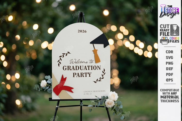 Graduation Welcome Sign Laser Cut | Class of 2026 Party Decor Laser Cut File | Personalized Graduation Celebration Backdrop | High School and College Grad Entry Sign | Glowforge Ready Digital Download | Custom Name Photo Prop | Layered Wood Event Signage | Welcome to Graduation Party Design | Grad 2026 | CNC File