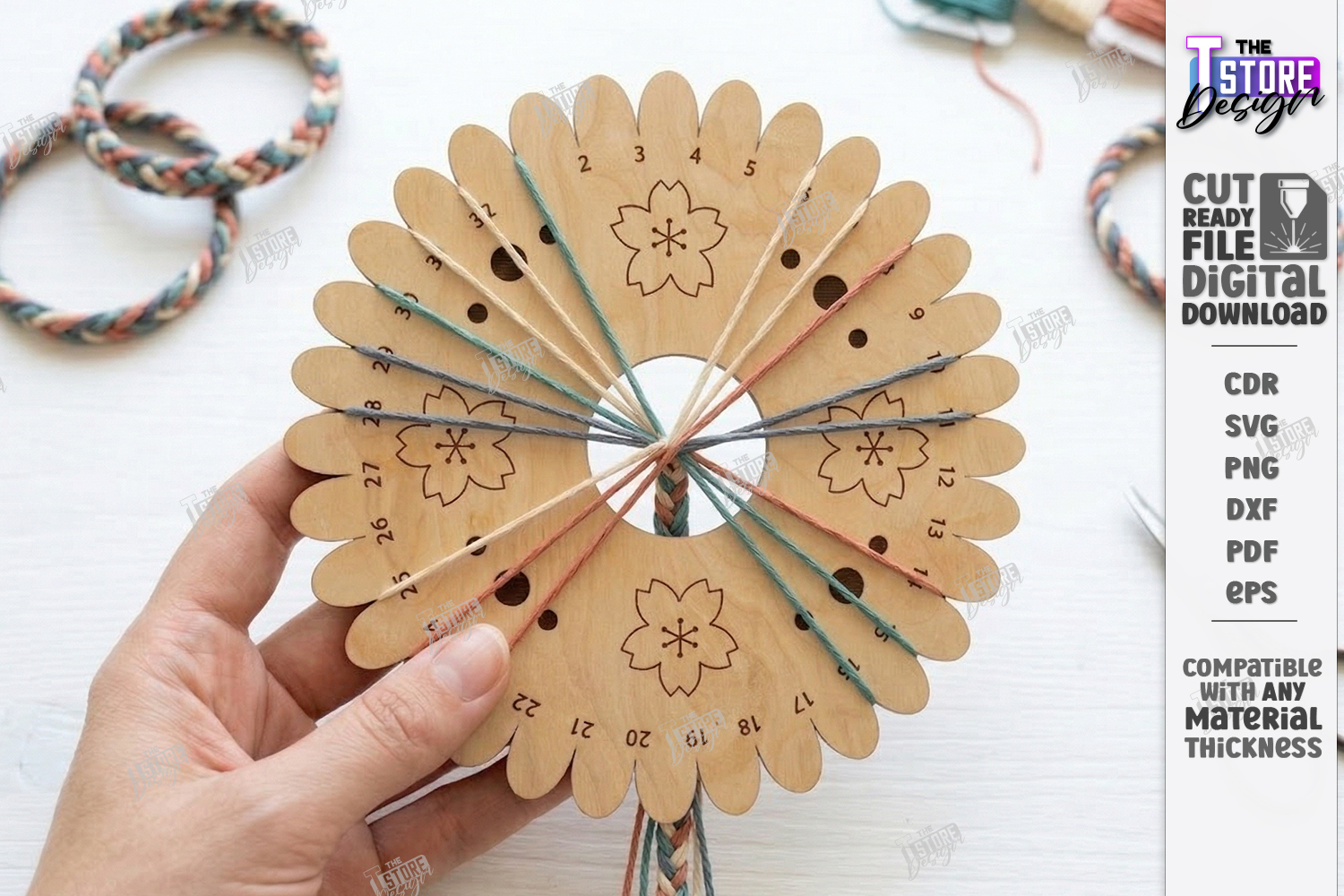 Wood Craft Jewelry Making Laser Cut File Friendship Bracelet Xtool Kumihimo Braiding Disc Japanese Braid Cord Maker Kumihimo Disc Laser Cut