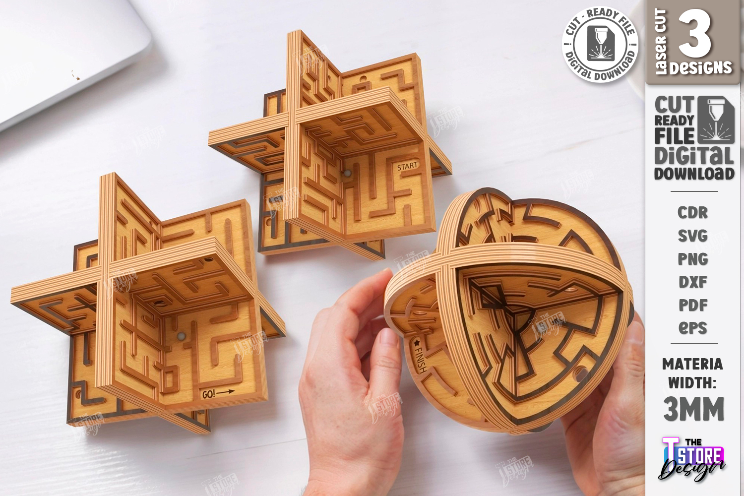 Similar Design Products to 3D Labyrinth Maze Puzzles Laser Cut Bundle | Maze Game SVG