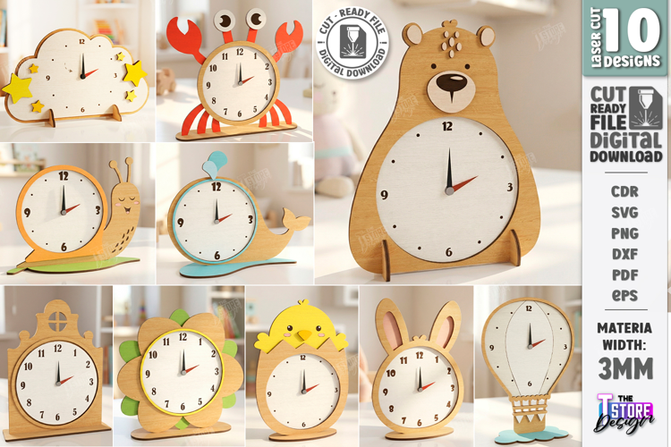 Similar Design Products to Kids Table Clock Laser Cut Bundle | Animal Shaped Clock SVG