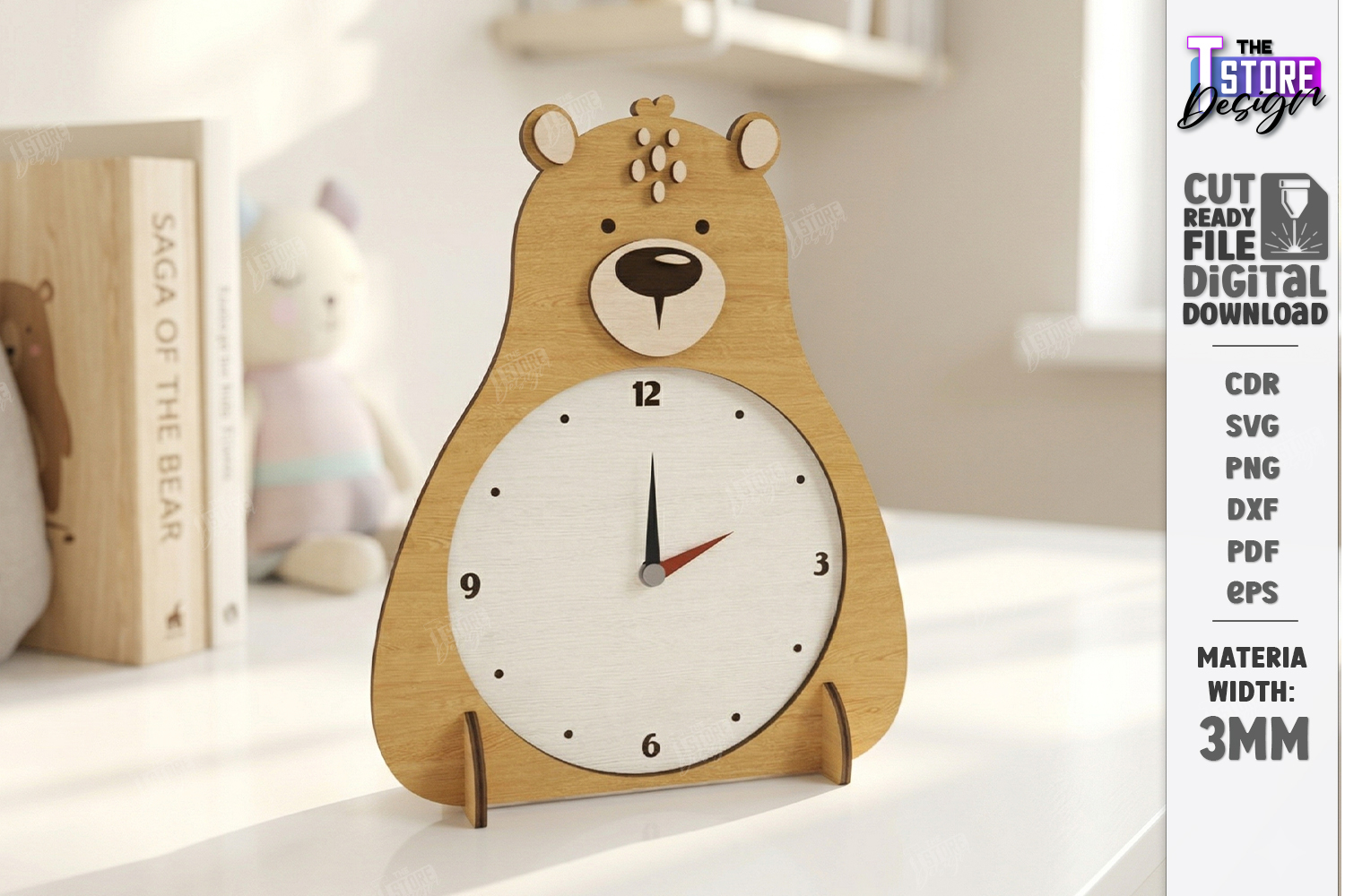 Kids Table Clock Laser Cut | Bear Shaped Clock | Kids Laser