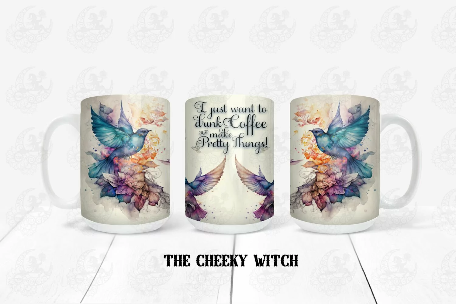 Sublimation Design Crafting Design Original Artwork Beautiful Mug Design Crafters And Coffee Birds On A Mug