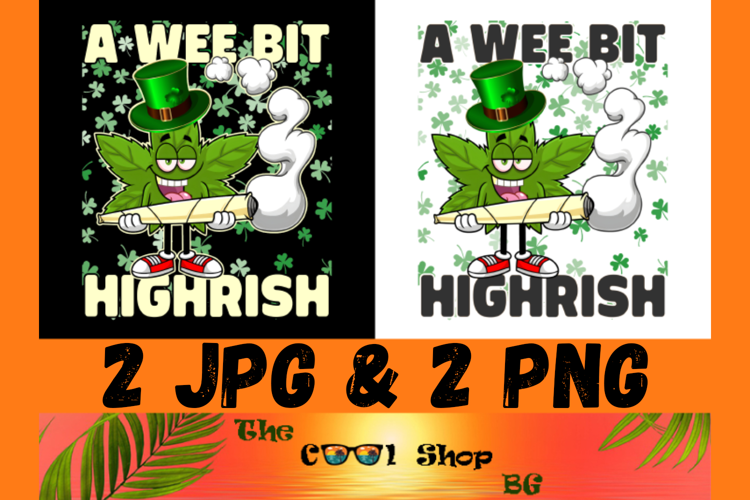 Celebrate St. Patrick's Day with a twist with our "A Wee Bit Highrish" funny 420 weed marijuana PNG, blending Irish themes with cannabis culture for a unique holiday statement. Featuring 4 leaf clover, leprechaun, and shamrock motifs, this design adds a humorous touch to your St. Patty's wardrobe.