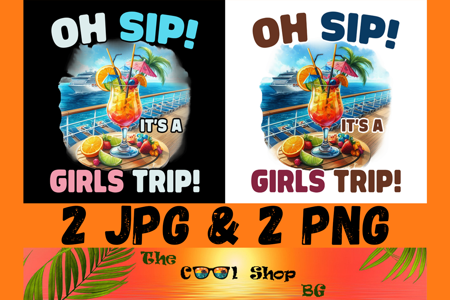 Celebrate your girls' getaway with our "Oh Sip, It's A Girls Trip" PNG file, perfect for cocktail lovers. Ideal for creating shirts for a girls' vacation, weekend, or cruise, this design adds a fun touch to any girls' trip adventure.