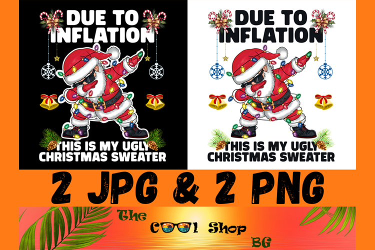 Get in the festive spirit with the "Due To Inflation" PNG, a humorous take on the classic ugly Christmas sweater. Complete your holiday look with the "This Is My Ugly Christmas Sweater" Christmas pajamas featuring Santa PNG, adding a touch of whimsy to your celebrations.