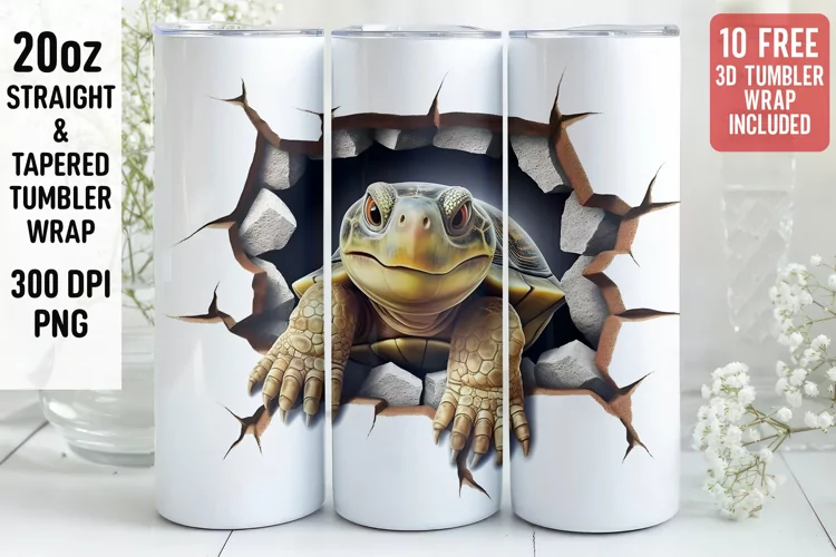 3D Turtle Tumbler Wrap | Skinny Tumbler Wrap