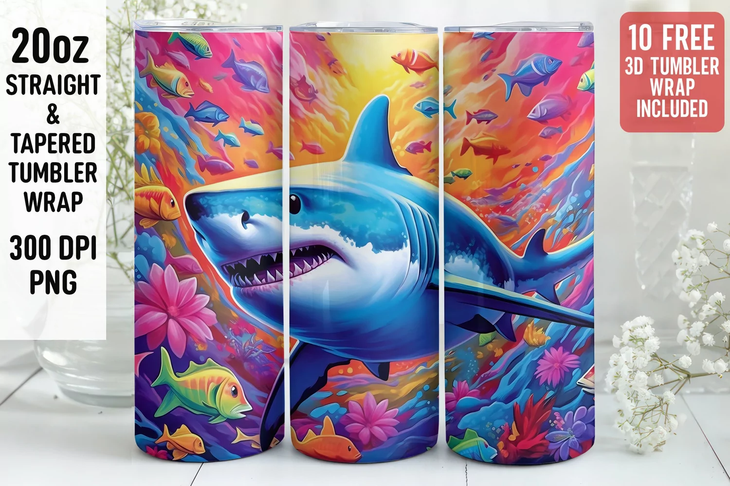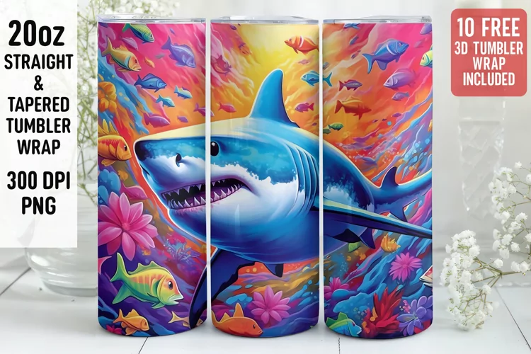 Similar Design Products to 3D Shark Tumbler wrap | Tumbler Sublimation Wrap Design