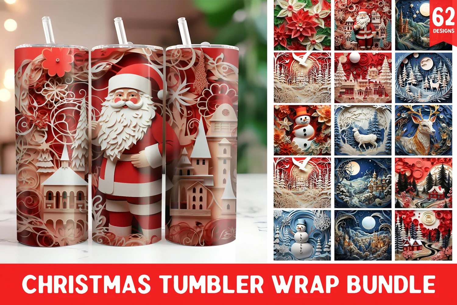 3D Christmas Tumbler Wrap | Christmas | Christmas Ornament