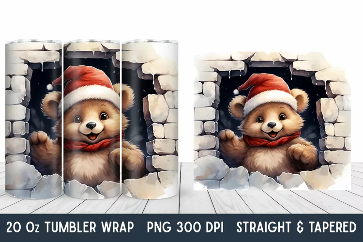 3D Christmas Tumbler Wrap | Broken Wall | Christmas PNG example image 1
