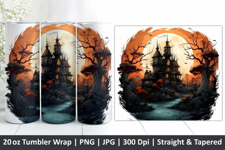Halloween Tumbler Wrap | Halloween Hunted House | Tumbler