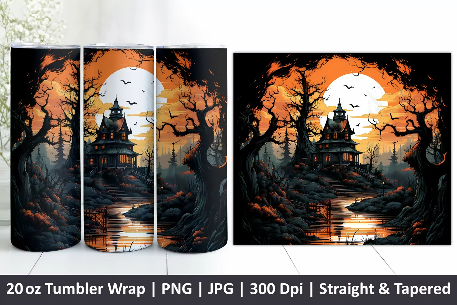 Halloween Tumbler Wrap | Halloween Hunted House | Tumbler example image 1