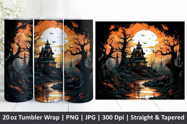 Halloween Tumbler Wrap | Halloween Hunted House | Tumbler