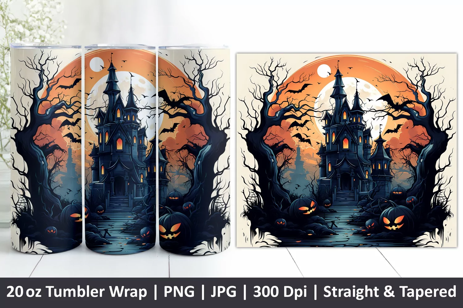 Halloween Tumbler Wrap | Halloween Hunted House | Tumbler example image 1