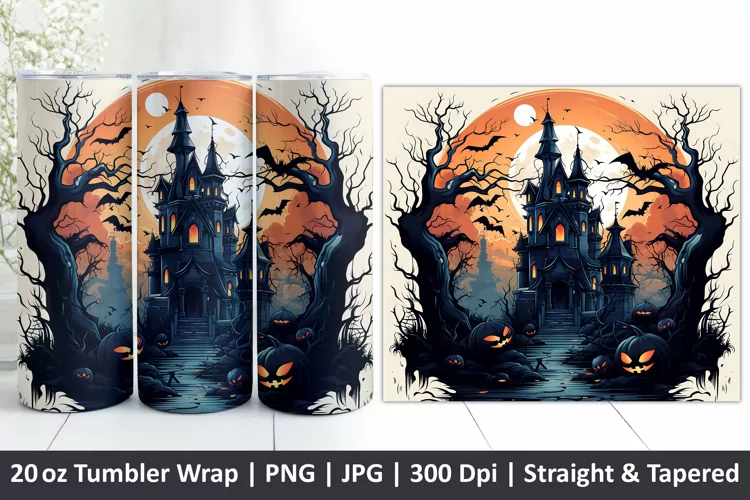 Halloween Tumbler Wrap | Halloween Hunted House | Tumbler