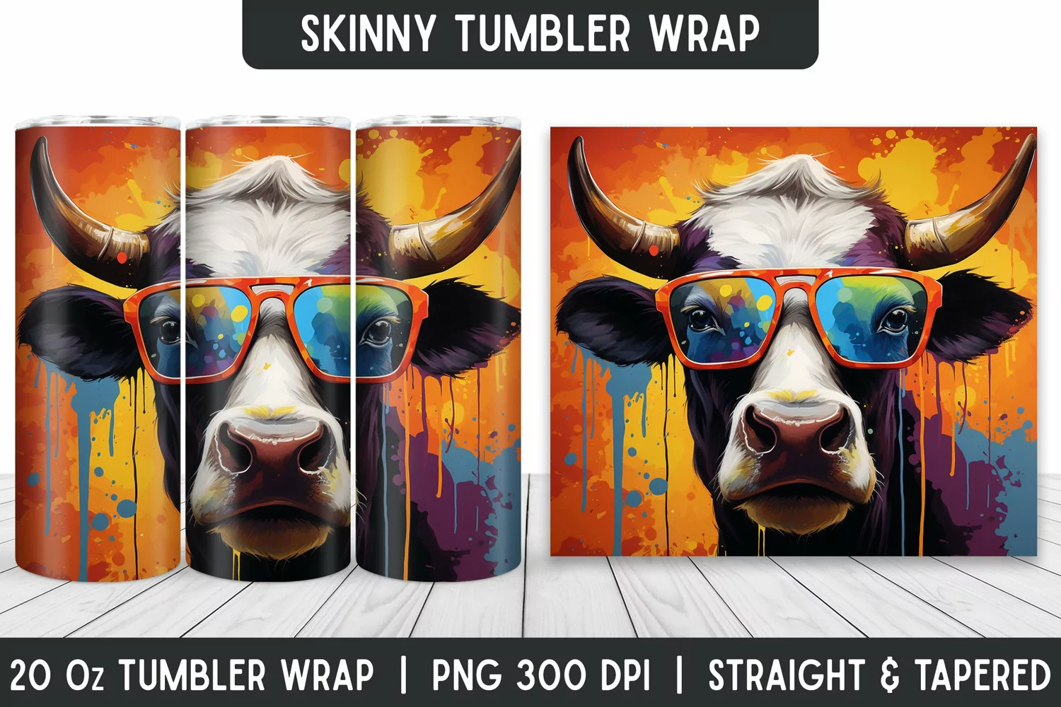 Watercolor Cow Tumbler Sublimation Wrap | Sublimation