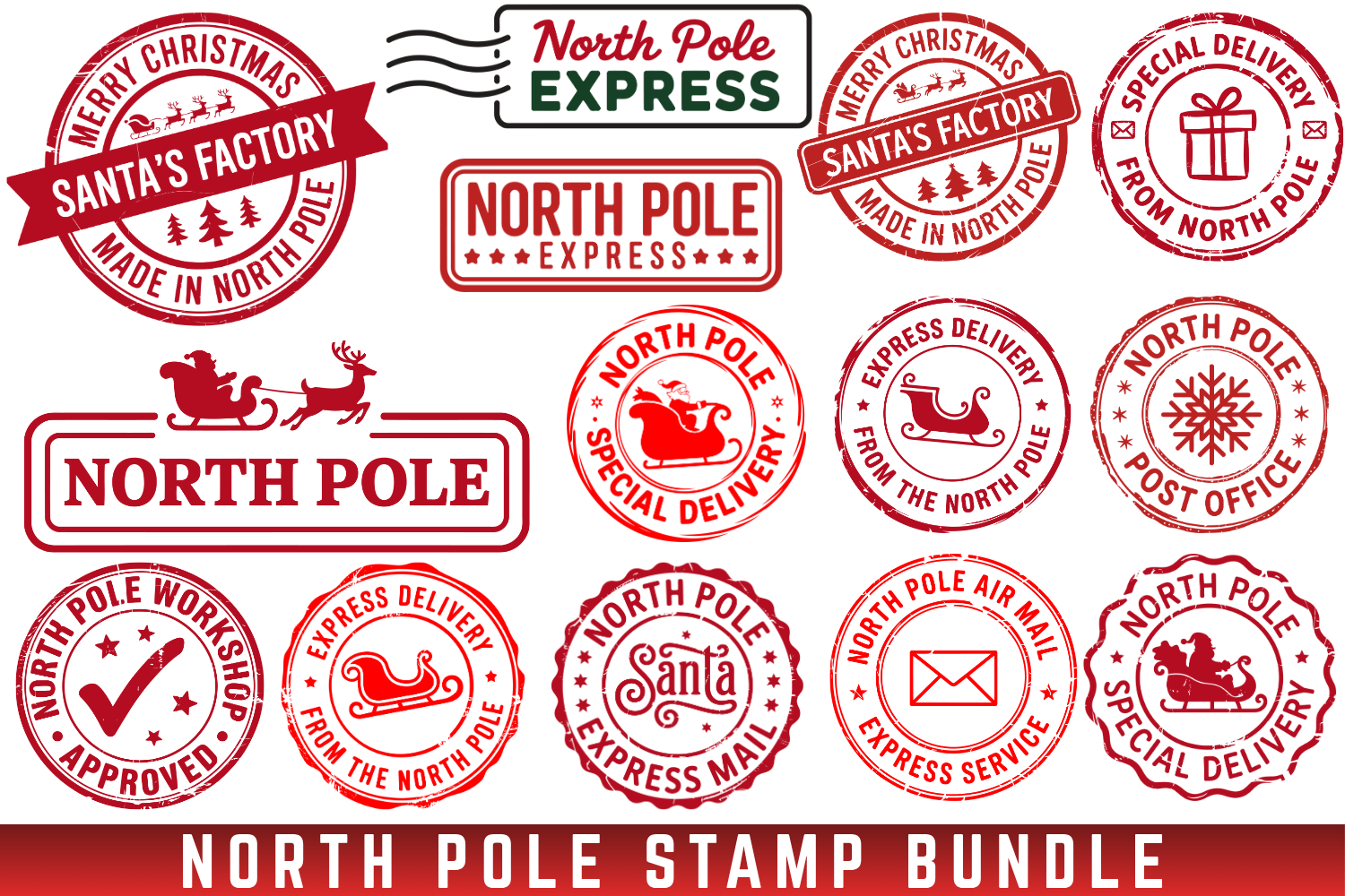 North Pole Stamp SVG Bundle, Christmas Svg Png Bundle