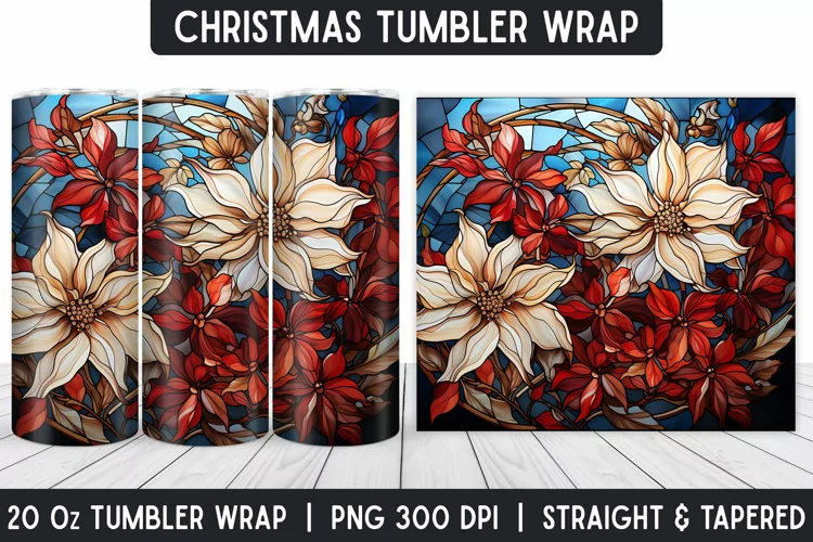 Christmas Flowers Stained Glass Tumbler Wrap | Sublimation