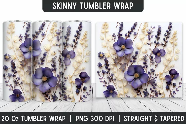 Flower Tumbler Wrap | 3D Sublimation | Skinny Tumbler