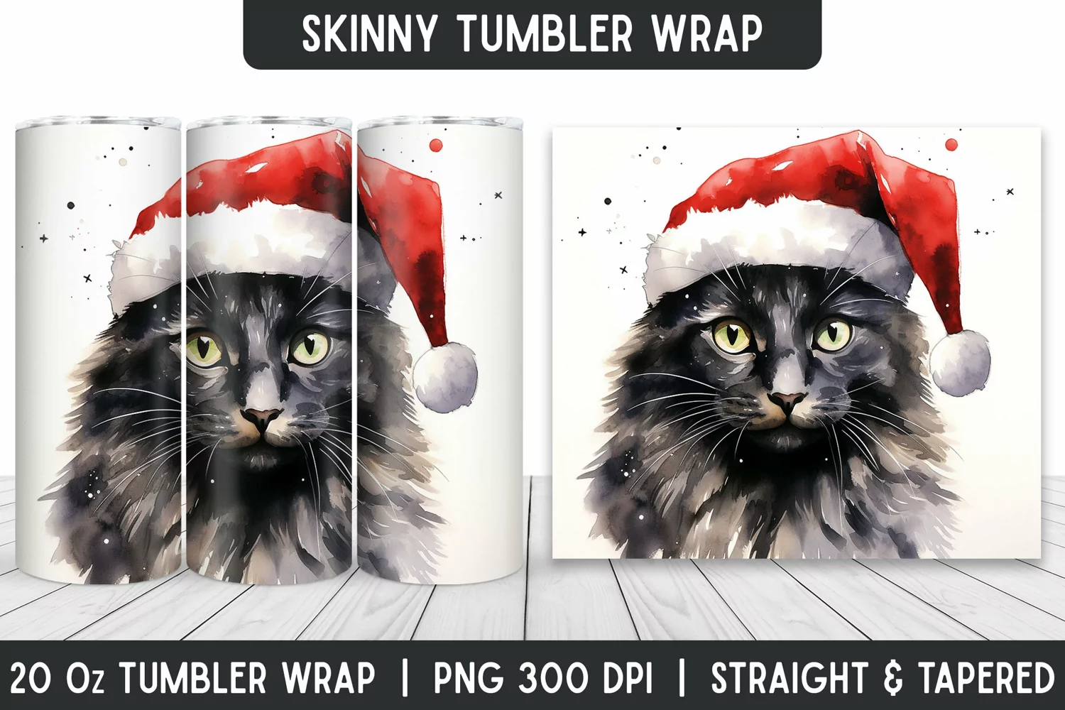 Christmas Watercolor Cat Tumbler Wrap | Christmas example image 1