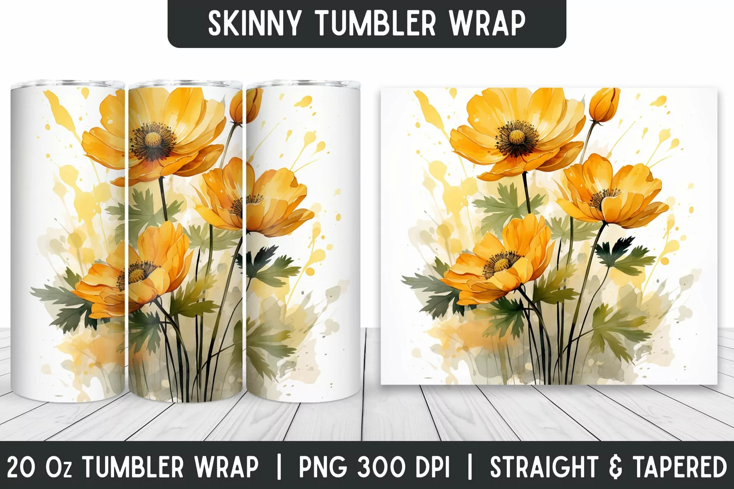 Watercolor Flower Tumbler Wrap | Sublimation Designs example image 1