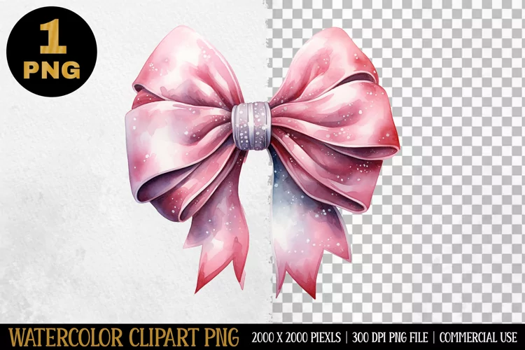 Bow Watercolor Clipart | Sublimation Designs | PNG example image 1