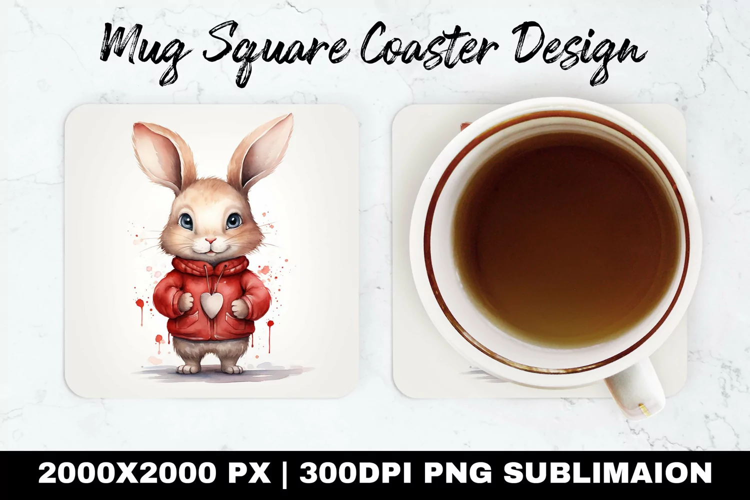 Cute Bunny Valentine Mug coaster | Coaster | Sublimation example image 1
