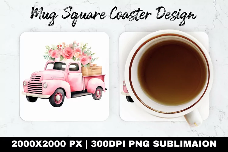 Similar Design Products to Truck Valentine Mug coaster | Coaster | Sublimation Design