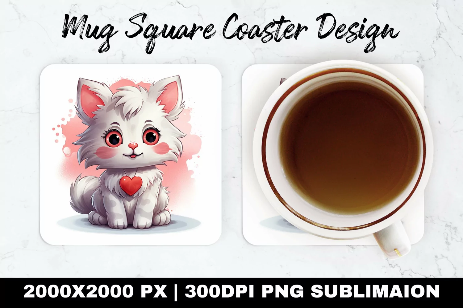 Cute Cat Valentine Mug coaster | Coaster Sublimation Design example image 1