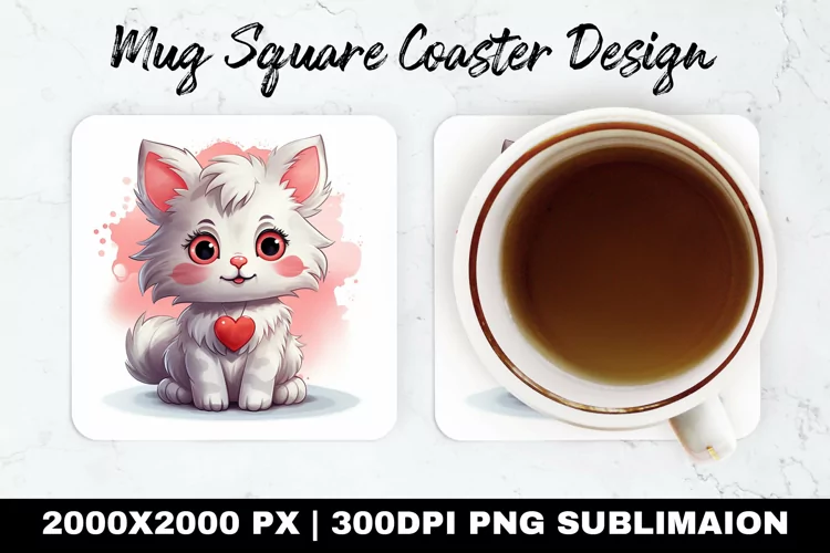 Similar Design Products to Cute Cat Valentine Mug coaster | Coaster Sublimation Design