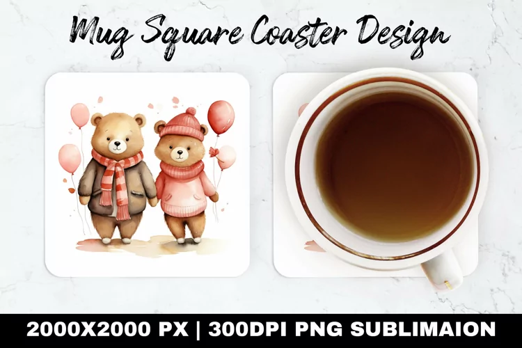 Cute Couple Bear Valentine Mug coaster | Coaster Sublimation example image 1