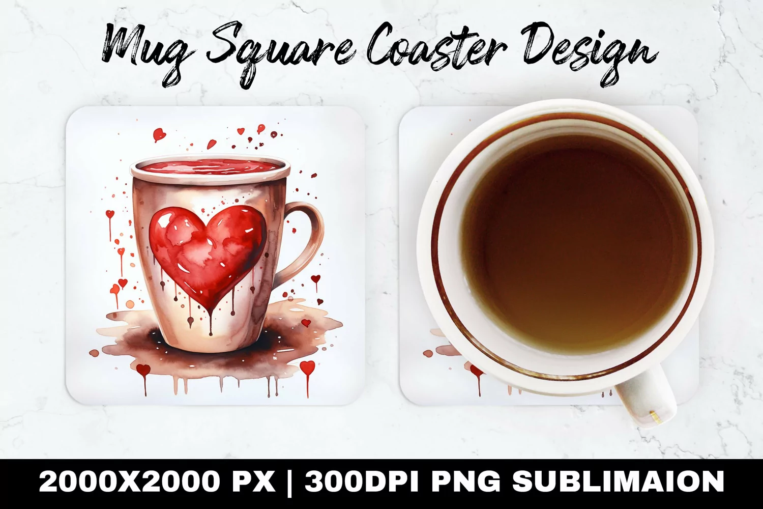 Coffee Cup Valentine Mug coaster |Coaster Sublimation Design example image 1