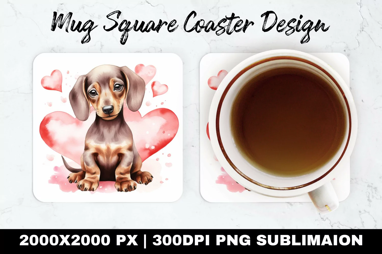 Similar Design Products to Dchshund Valentine Mug coaster | Coaster |Sublimation Design