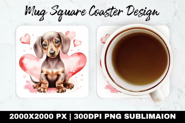 Dchshund Valentine Mug coaster | Coaster |Sublimation Design example image 1