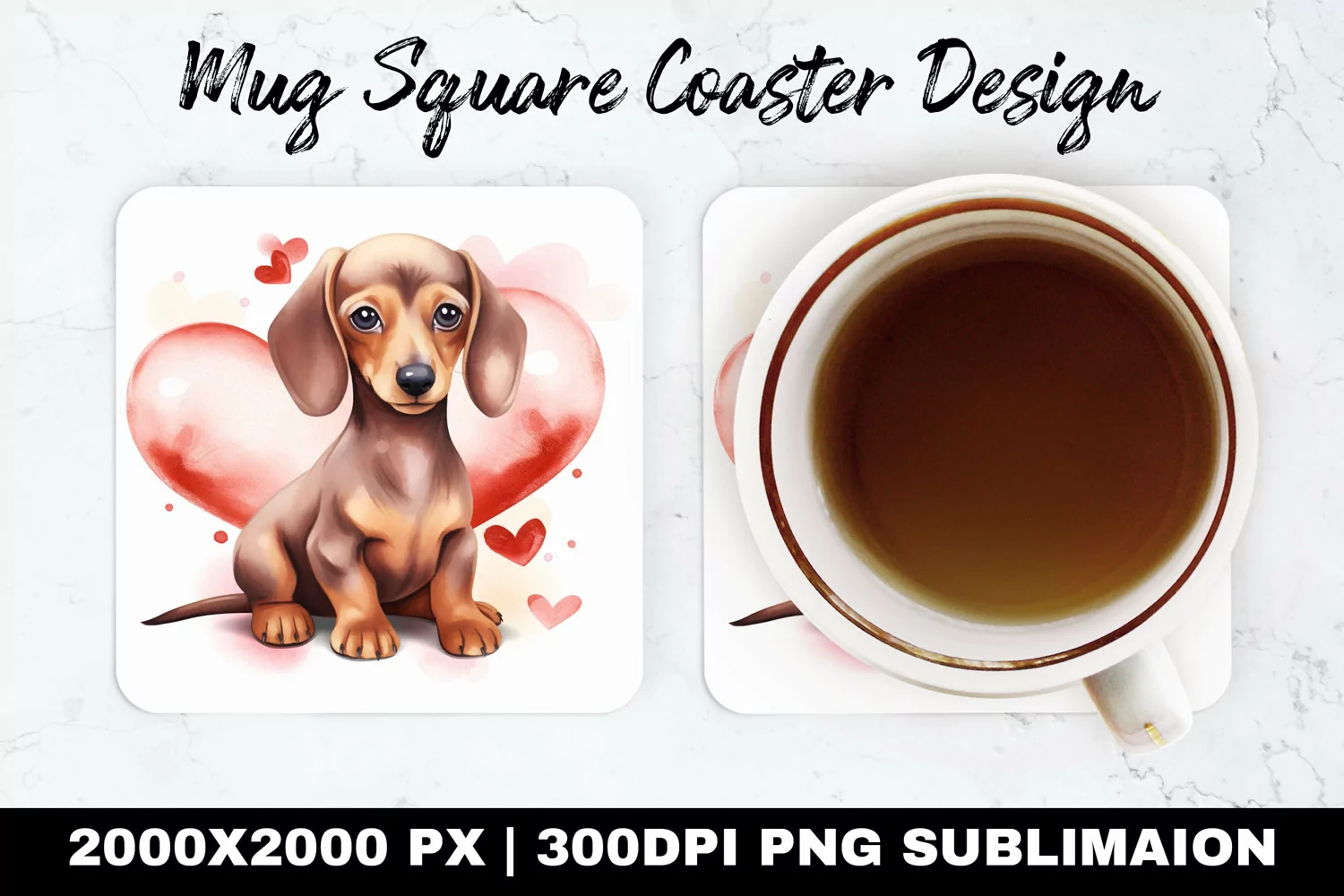Similar Design Products to Dchshund Valentine Mug coaster | Coaster |Sublimation Design