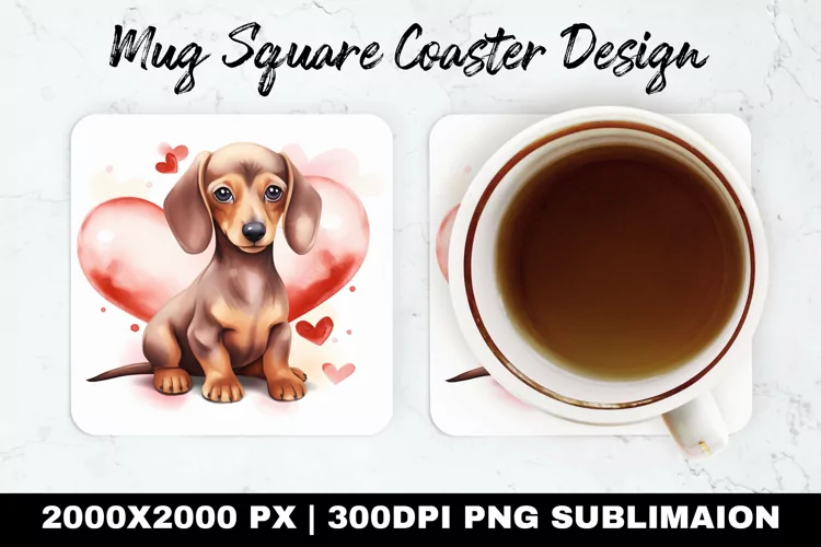 Dchshund Valentine Mug coaster | Coaster |Sublimation Design example image 1