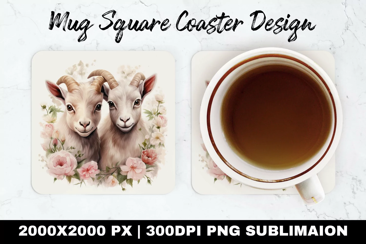 Two Goats Valentine Mug coaster | Coaster Sublimation Design example image 1