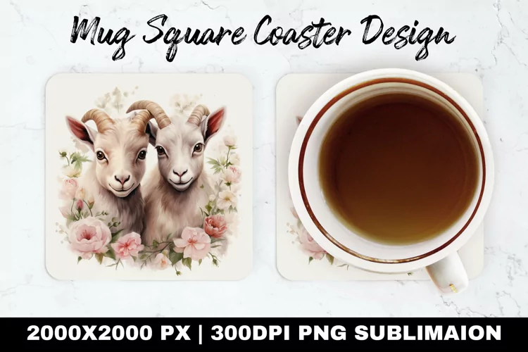 Similar Design Products to Two Goats Valentine Mug coaster | Coaster Sublimation Design