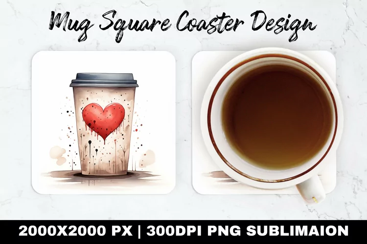 Similar Design Products to Coffee Cup Valentine Mug coaster | Coaster | Sublimation Des